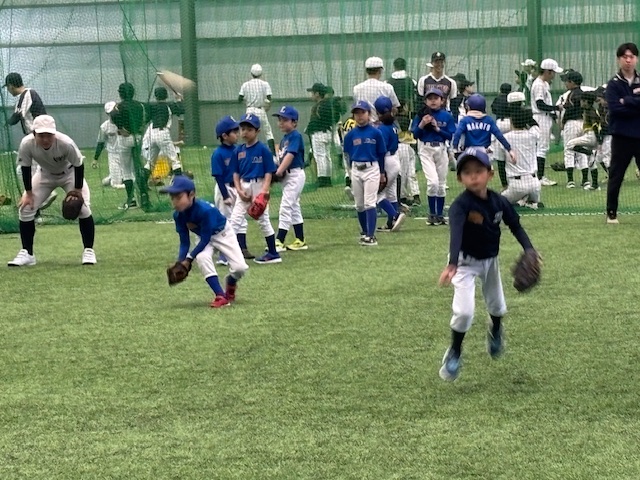 野球教室の間、子どもたちは笑顔で野球の練習を楽しんでいました。中学生になっても、野球を続けて欲しいと願っています!