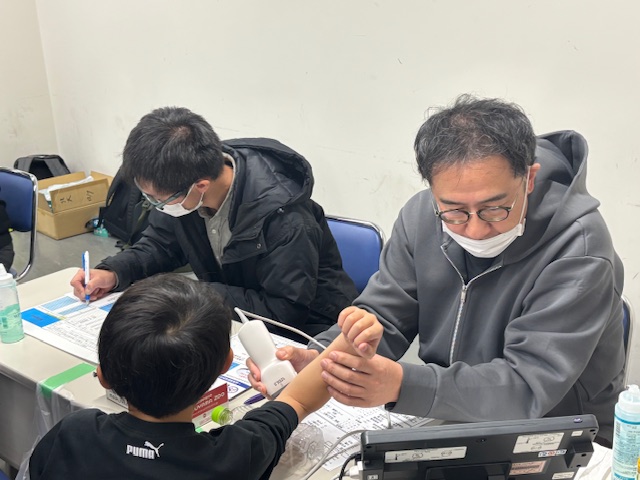11月15日(土)妹背牛町で、空知の野球を考える会主催の北空知「親子DAY野球」で肘健診を実施しました。58名の少年野球の選手が肘健診を受けました。