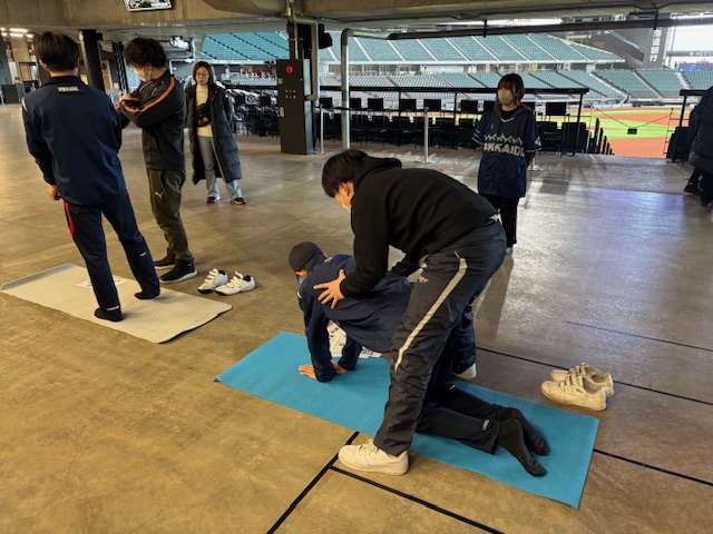 12月6日はエスコンフィールドHOKKAIDO、7日は北海道大学医学部で成長期肘検診が行われました。6日は132人、7日は318名の少年野球・中学野球選手が、肘検診と心臓エコー検診を受診しました。エスコンではファイターズの選手がアップしたり、ファイターズjr.の選手が試合前の練習をするのを見ながら、肘検診と心臓検診を行いました。北大では医学部フラテ会館ので肘検診、心臓検診を行いました。肘検診は成長期の野球選手の肘をケガから守るための予防のための検診であり、毎年継続して検診をすることが大切です。次回の北海道少年野球肘検診は、1月25日(日)新札幌整形外科病院です。多くのチーム、野球少年・少女が参加して欲しいです。申し込みは1月5日まで受け付けています。