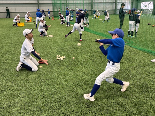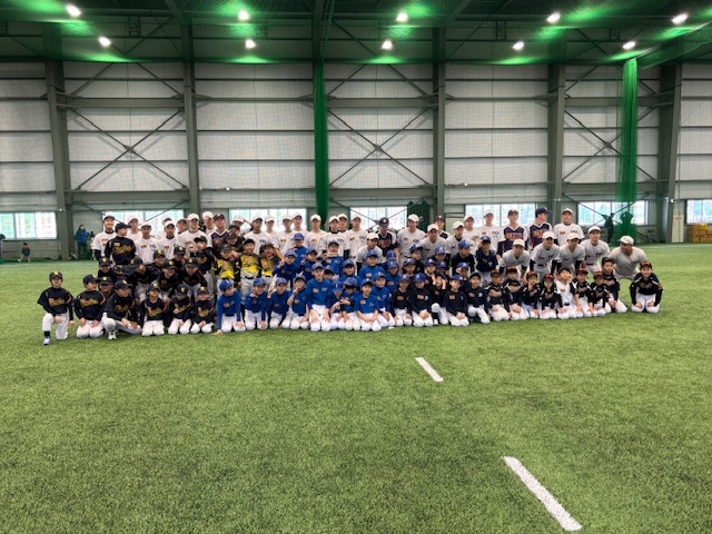 野球教室の間、子どもたちは笑顔で野球の練習を楽しんでいました。中学生になっても、野球を続けて欲しいと願っています!