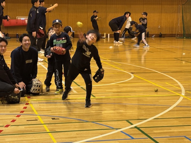 小学校6年生80数名の子どもたちが、2時間に分かれて、牧谷宇佐美講師からボールの投げ方を教わり、遠くに投げられるようになったお子さんが多かったです。野球を好きになった子どもたちも増え、放課後に大谷グラブを使ってキャッチボールする子が多くなってきたとの報告がありました。キャッチボール(投げ方)教室は、今年度は来年2月まで、道内の小学校対象に受け付けていますので、お申し込みください。