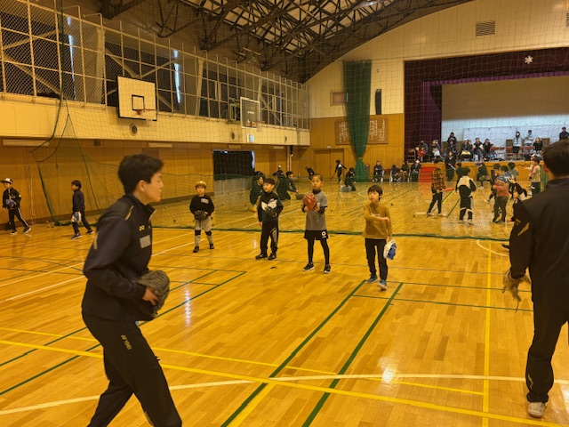 比布町立中央学校でキャッチボール教室を開催!
